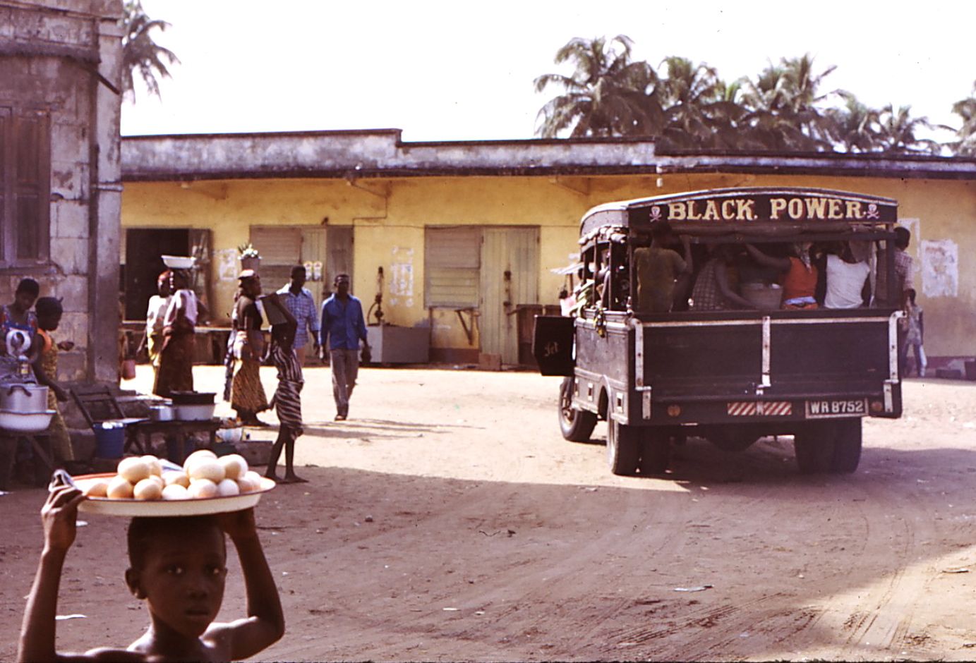 In 1957, Ghana led the way for other African countries to reclaim their independence from the colonial powers. This lorry, delivering a load of passengers to the market at Half Assini sometime between 1971 – 73, may be making a reference to that or it may be simply stating something that all Africans have always known – there is a power in Africa that comes from its people and that now can be found around the world.