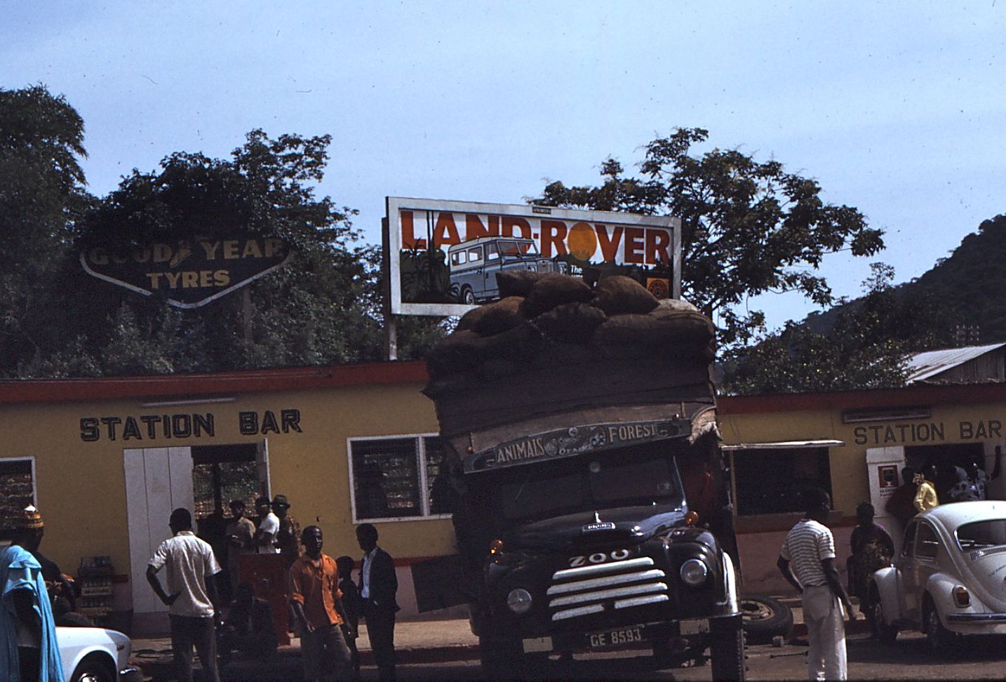 Lorry owners choose their slogans and sayings for good reasons, although those reasons may not always be clear to everyone. This allows us our to create stories and scenarios in our own imaginations. This old Bedford was so heavily loaded and leaning to one side that any animals that it may have encountered in the forest would have been well advised to stay clear. This load was likely destined in 1972 to be off-loaded at Jewi Wharf onto canoes and transported across the Tano lagoon to neigbouring Cote d’Ivoire. And if you wanted to let your imagination wander just a bit, you might find yourself wondering what kind of goods were being transported, and whether or not they might have been smuggled…