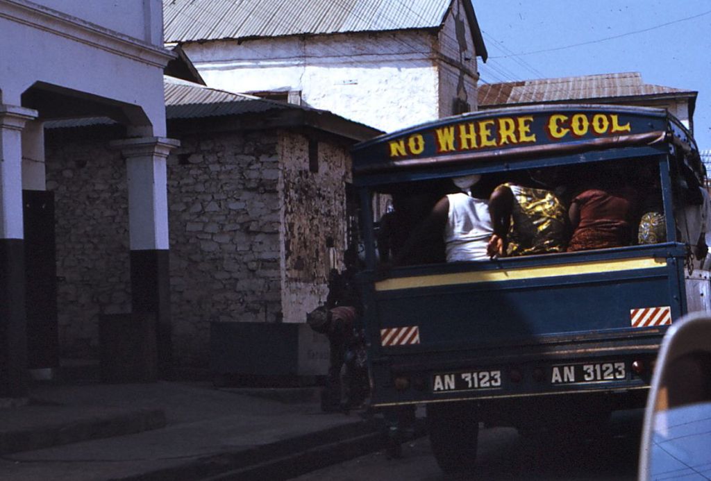 I “snapped” this lorry one day in 1972 when passing through the coastal town of Elmina. I expect that this slogan could be a favorite of tourists visiting from temporate climes as well as politicians who may find themselves in the hot seat for any number of reasons!