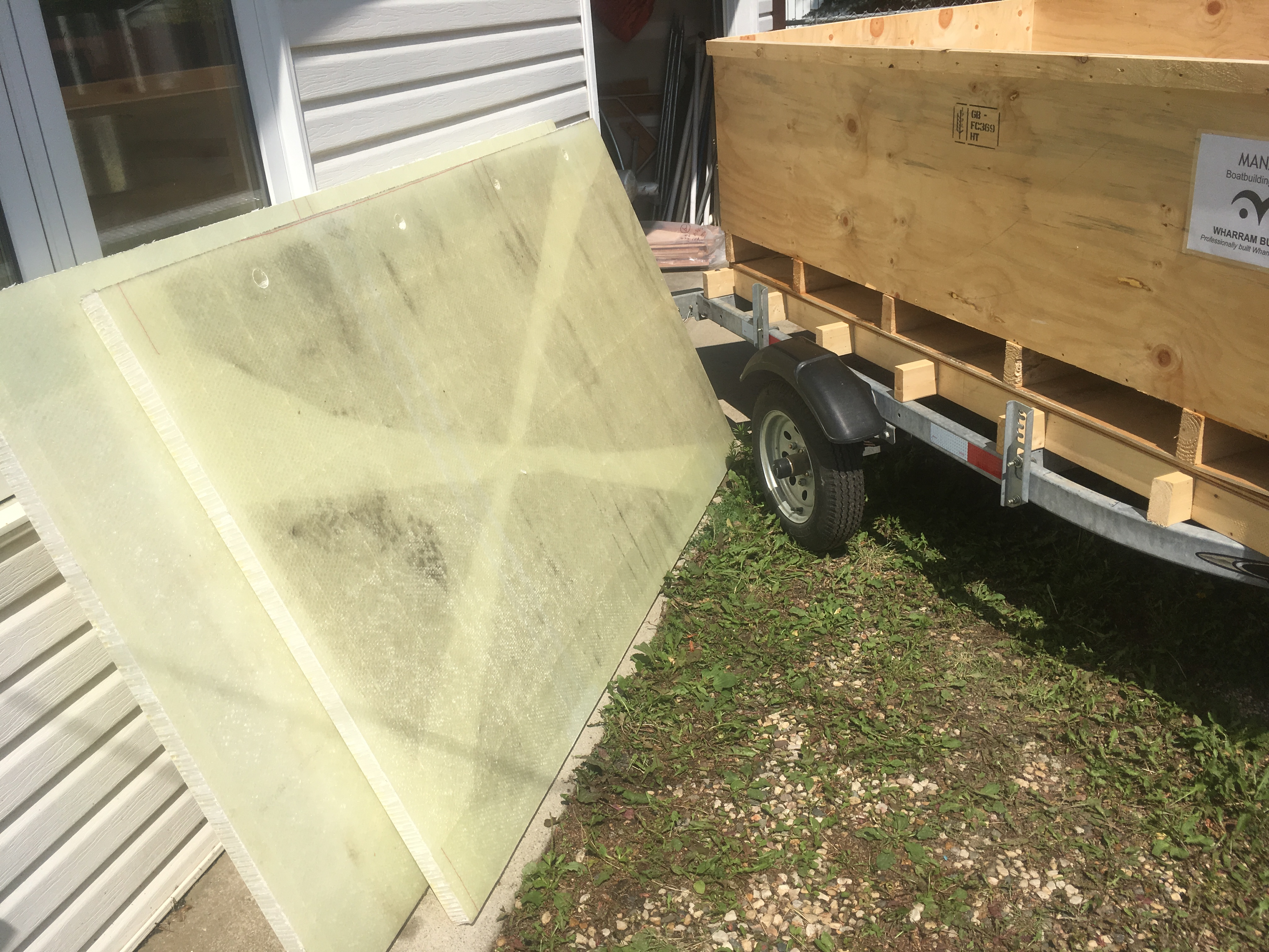 On July 19, after clearing the paperwork through Canada Customs in Calgary, Alberta, I took delivery of Kit #3, a wooden crate containing the CNC cut plywood components plus sails, hardware, lines and fastenings required to build a sailboat. The Mana 24 is the first kit boat to be sold by James Wharram Designs. The prototype  boat, #1, designed by James Wharram and Hanneke Boon, was launched in the summer of 2016 at Cornwall, England.  Kit #2 was shipped a week ahead of mine to another boat builder in Norway.