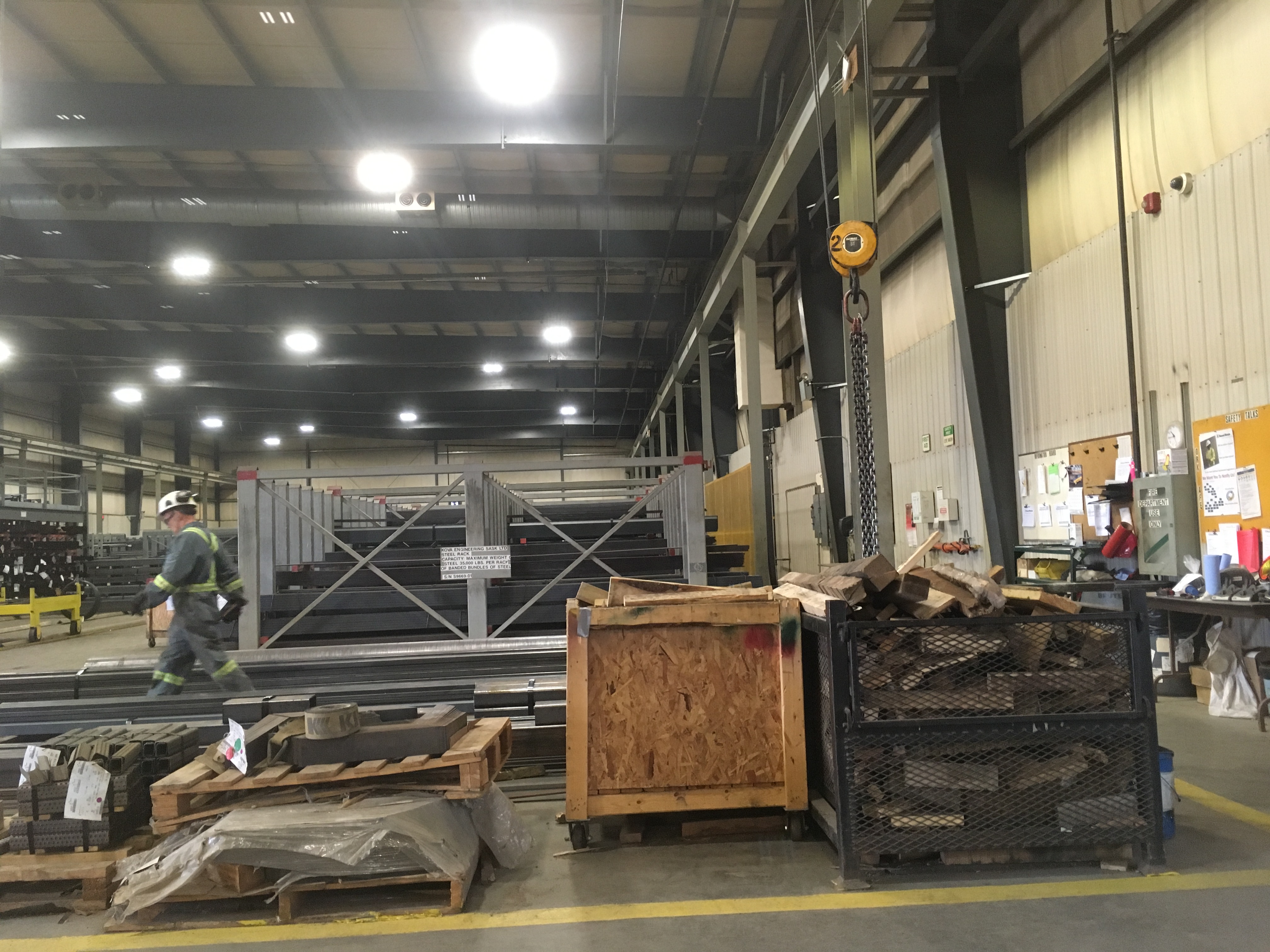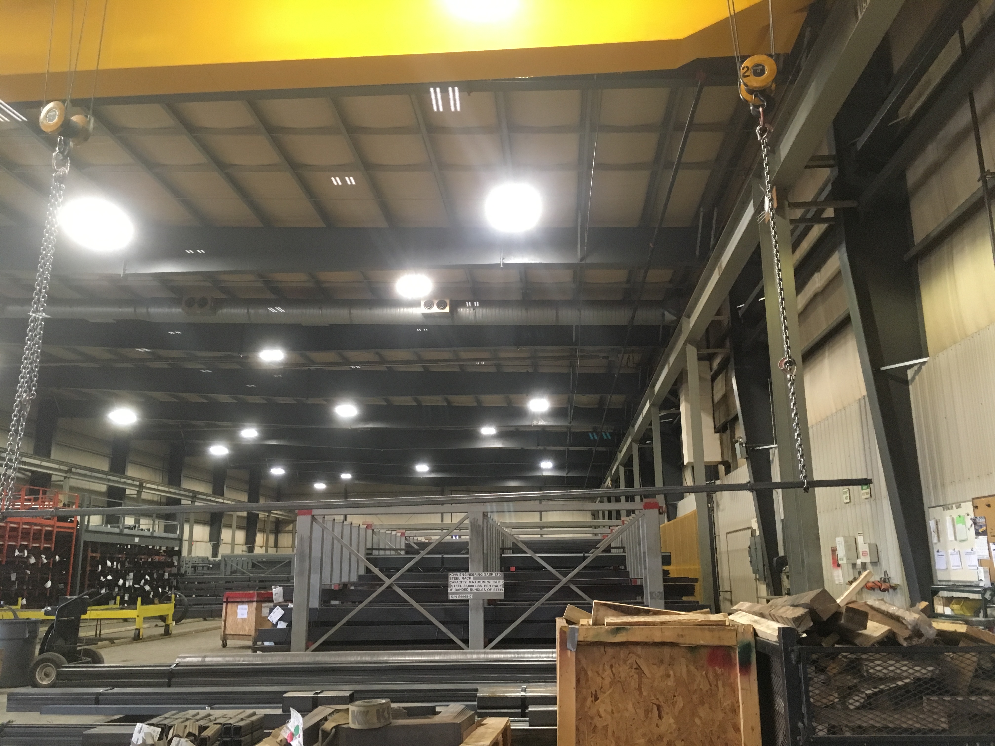 That led to a rather humorous scenario. My purchase at the local branch of Russell Metals consisted of one 20 foot length of 1 1/2 inch angle iron plus one 24 foot length each of 1 1/2 inch and 2 inch square steel tube . A multi tonne hoist, clearly accustomed to lifting loads many times heavier, was used to lift and place my meagre purchase on the trailer so that I could bring it home.