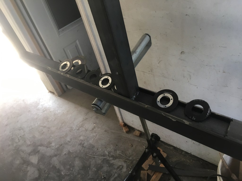Once home, the fabricating work began. For the next few days I put away my wood working tools and got out angle grinder, welder and drill press. I went through quite a few thin cutting wheels in the process.